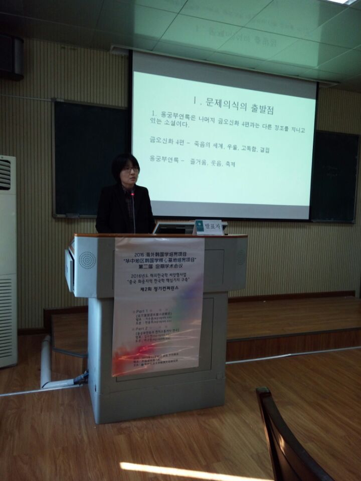 2016年12月30日下午两点,2016年海外韩国学培育项目——“华中地区韩国学核心基地培育项目”第一届定期学术会议在外国语学院三号楼3402教室拉开序幕。这意味着,自十月起,华中师范大学朝鲜语系将定期举办华中地区韩国学学术会议。出席此次学术会议的教师有华中师范大学朝鲜语系系主任池水涌教授、裴圭范教授、韩龙皓教授、金水渊教授等,以及朝鲜语系全体研究生和本科生。