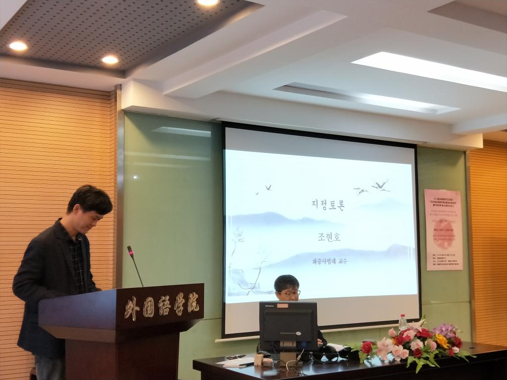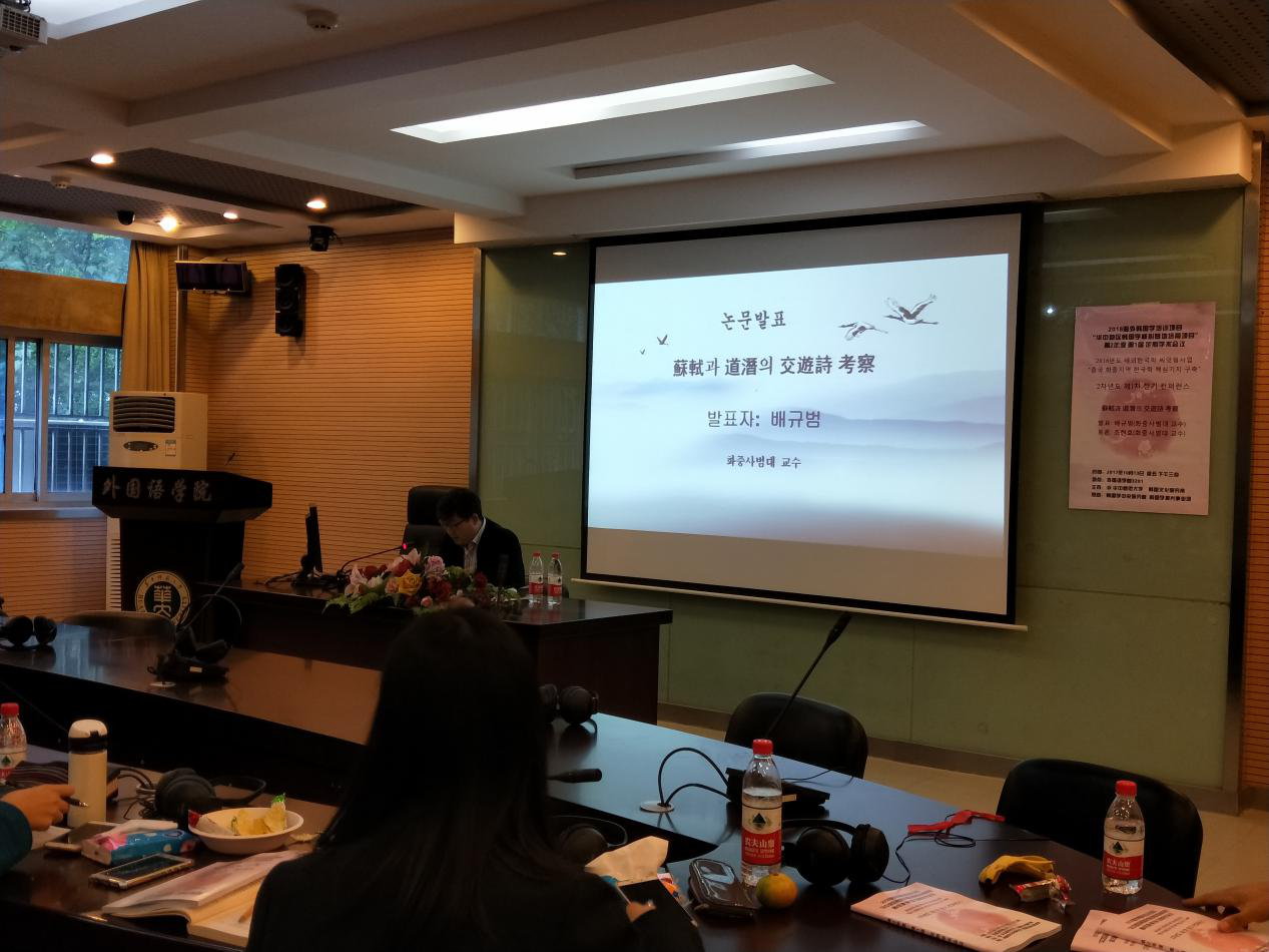 在第二环节“论文发表”中,裴圭范教授以“苏轼和道潛的交游诗考察”为题作了主题发言,接着由赵显昊教授对此论文发表了自己的意见。学术会议采取“圆桌会议”的形式,论文发表期间不断有老师或学生提出疑问和想法,使得每一位老师和同学都能够真正参与到学术讨论中来。