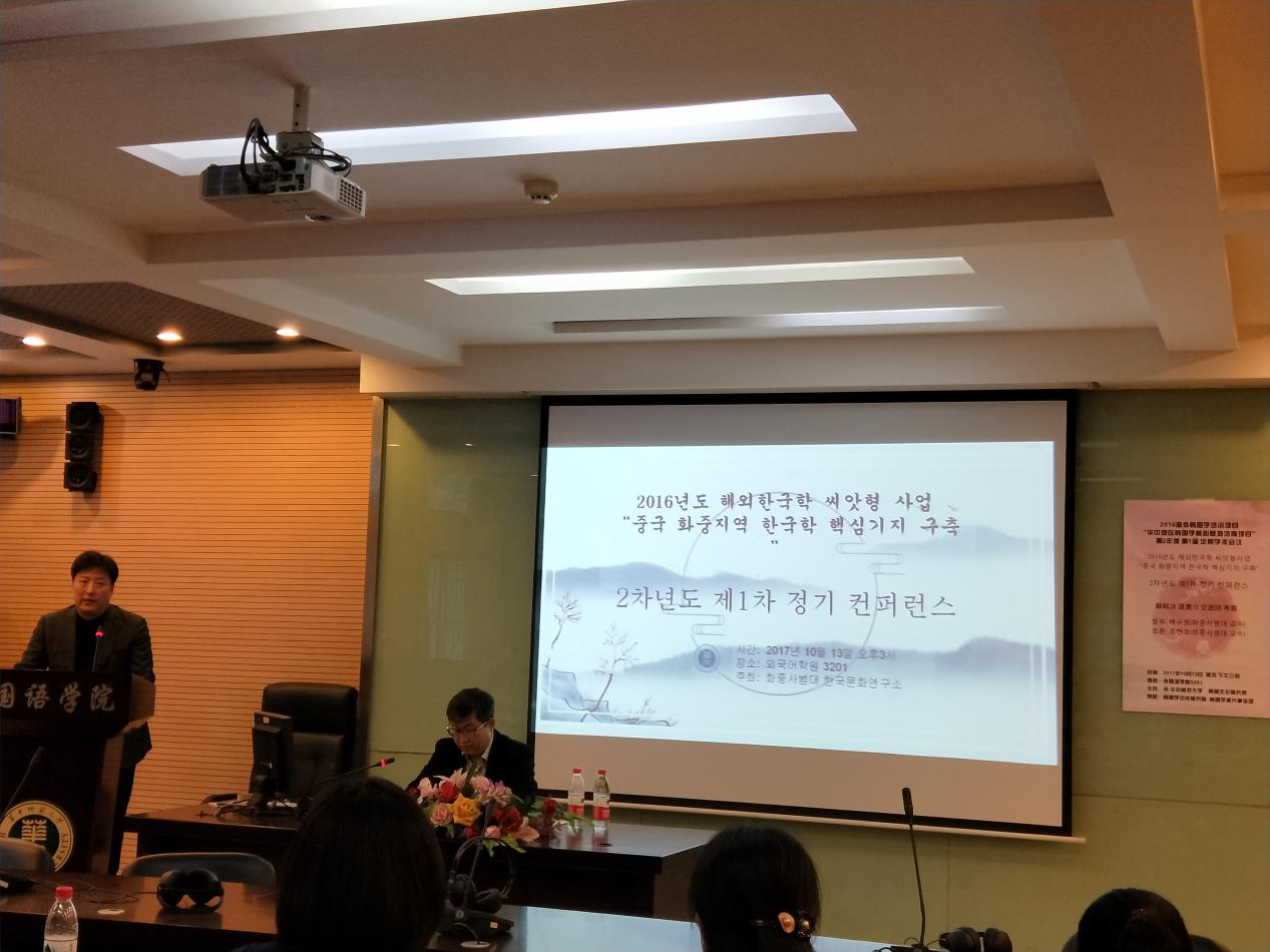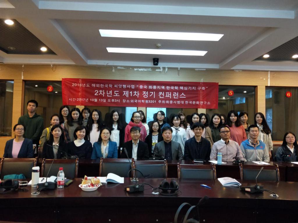 值此金秋时节,2016年海外韩国学培育项目——“中国华中地区韩国学核心基地培育项目”第二年度第一届定期学术会议于2017年10月13日下午三点在外国语学院三号楼3201室正式拉开序幕。出席此次学术会议的有华中师范大学韩国文化研究所所长池水涌教授和韩语系全体师生。