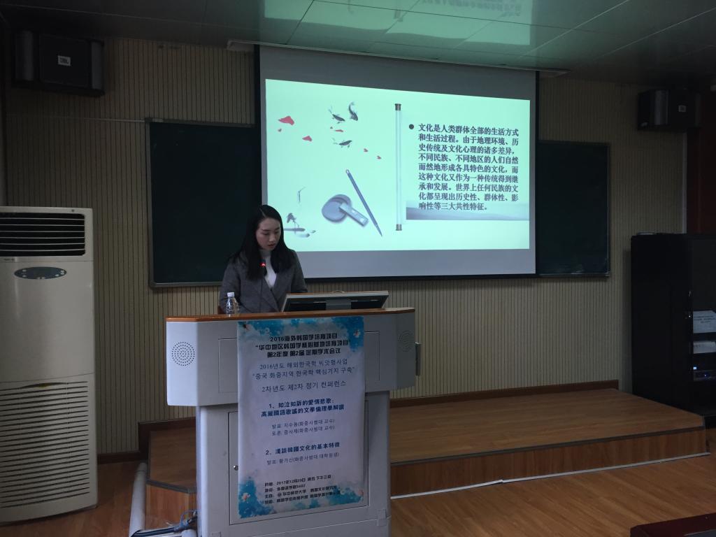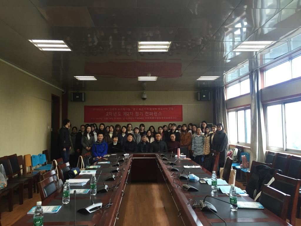 2016年海外韩国学培育项目——“中国华中地区韩国学核心基地培育项目”第二年度第二届定期学术会议于2017年12月29日下午三点在外国语学院三号楼3402室正式拉开序幕。出席此次学术会议的有华中师范大学韩国文化研究所所长池水涌教授和韩语系全体师生。
